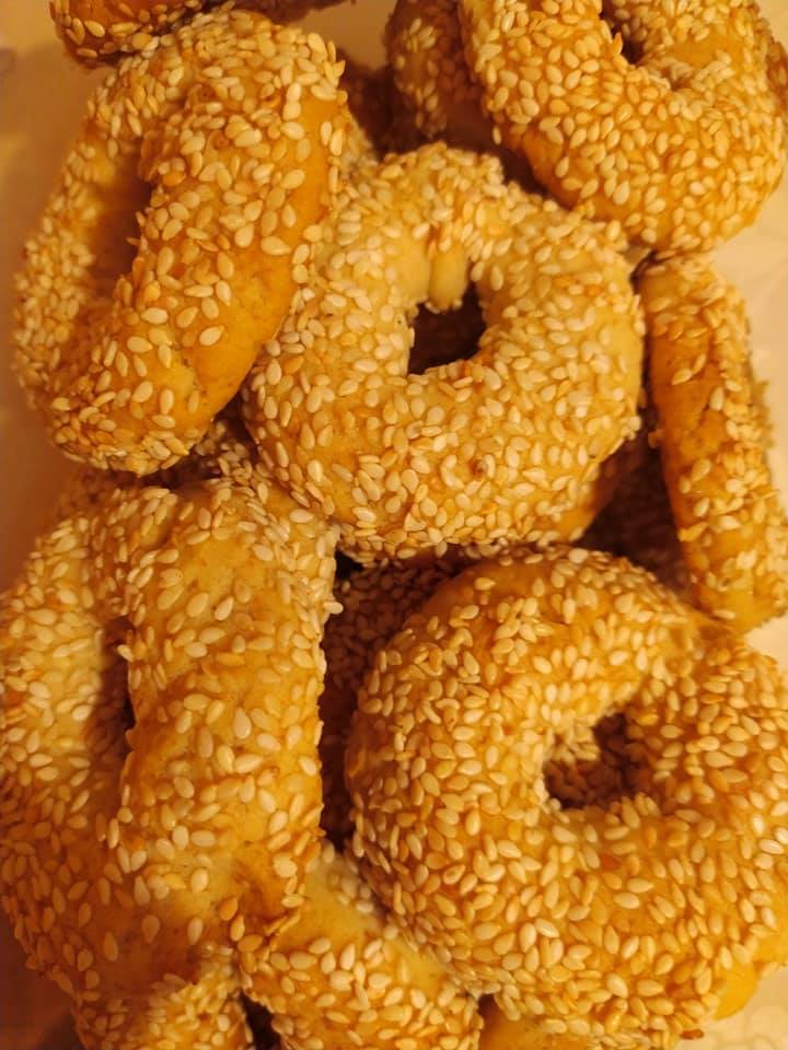 В оригиналната рецепта от тестото се правят пръчици, които се мажат с разбит с олио жълтък и се поръсват със сусам, но на мен ми беше по лесно оформя гевречета от тях. Ако решите да оформяте по оригиналния начин, към продуктите добавете и 1 жълтък, разбит малко олио.