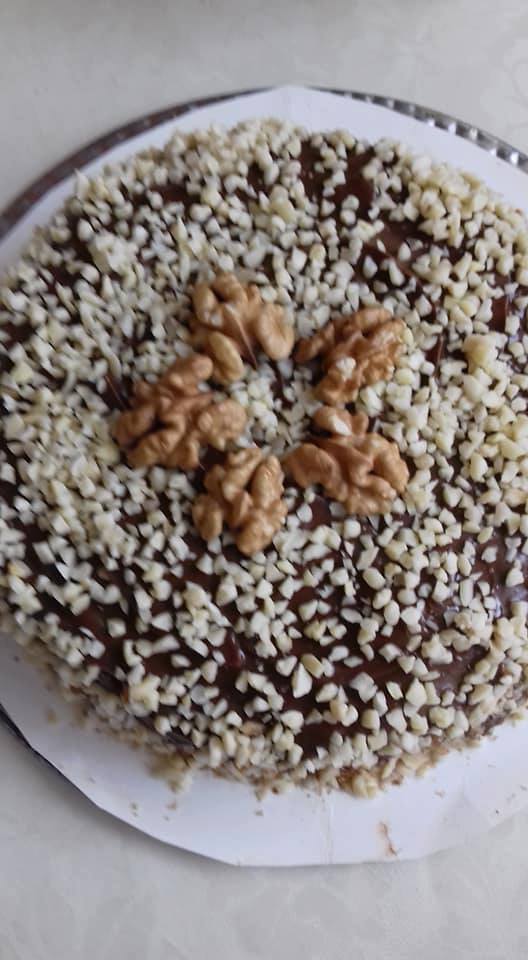 Когато кремът е готов, се реди тортичката. Може да се украси по желание с малко смлени орехи или бадеми…. и щипка любов. Оставя се в в хладилника поне за два часа, за да стегне, и после се хапва с най-голямо удоволствие ❤