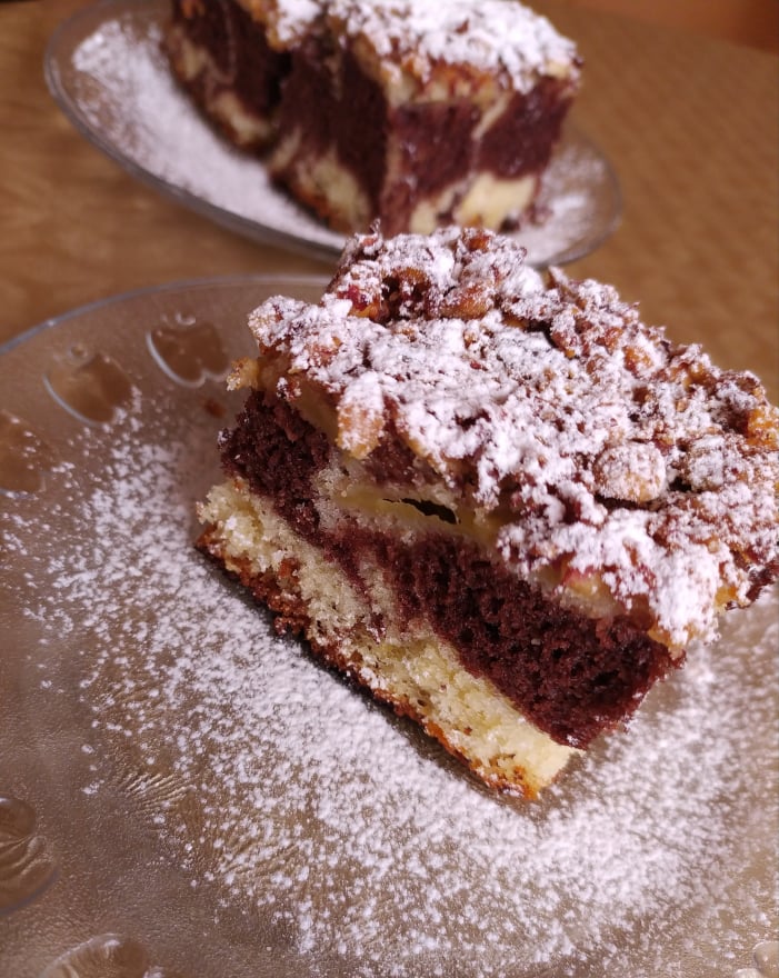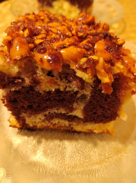 Пече се в предварително загрята на 160-170* фурна (без вентилатор) за около 40-50 мин., или до суха клечка. При сервиране ядките трябва да са отгоре. По желание може да се поръси с пудра захар….и щипка любов ❤