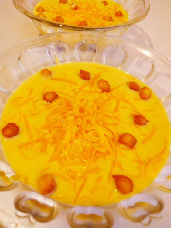 Тази крем супа е изключително ароматна и сгряваща заради джинджифила, с който се приготвя. За допълнителен аромат и вкус, при сервирането ѝ може да поръсите освен със сирене и с малко запечени тиквени семки – става разкошна ❤