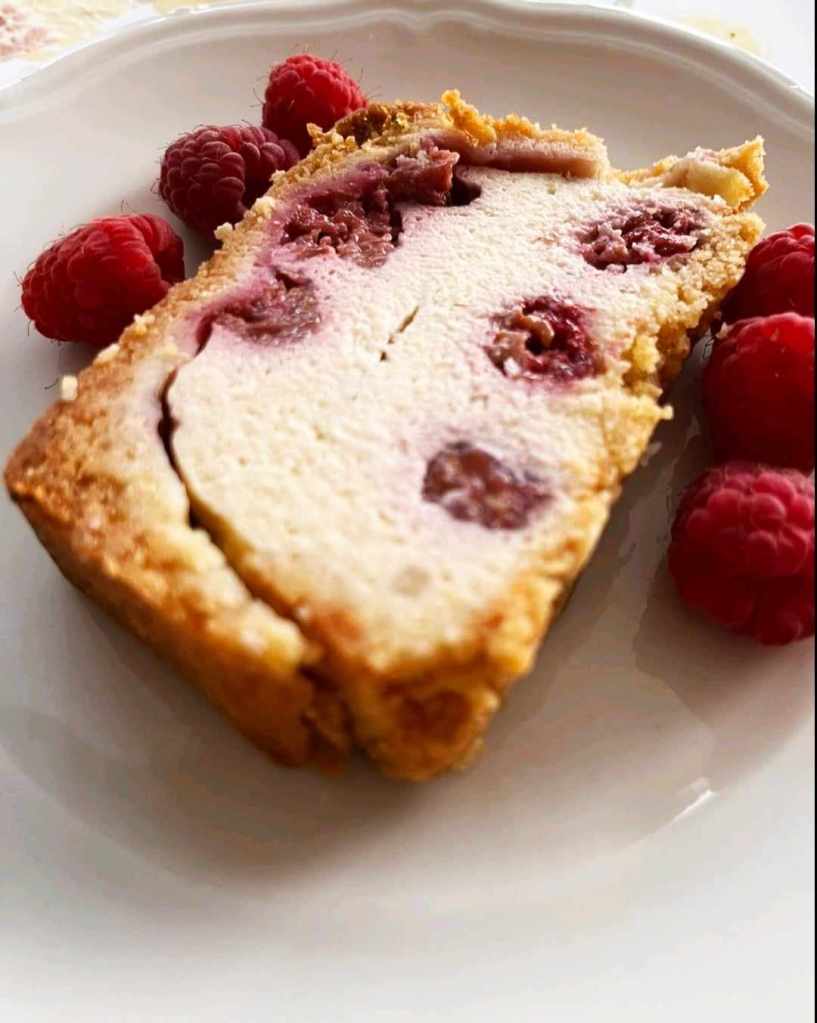 Охладих, обърнах върху дъска за рязане. Разрязах на парчета и сервирах с пресни малини…и щипка любов ❤