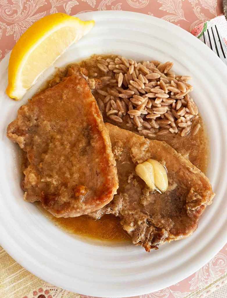 Обикновено приготвям това ястие със свинско месо от бут или врат, но всяко свинско месо е подходящо, стига да е крехко и да може да се нареже на тънки пържолки.